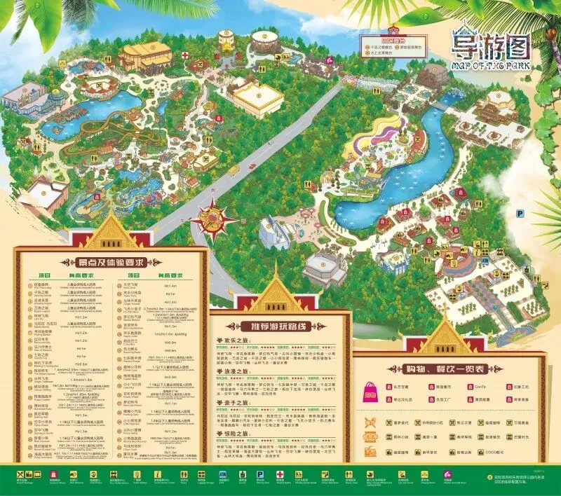 伴你飞翔-寻找鱼尾狮-极地快车-马戏转转杯-拉玛传奇-马六甲勇士-疯狂草帽-海盗大冒险-丛林飞龙-空中飞舞-峡谷漂流-太空飞梭-丛林大转盘-雨林探险-吉吉快车