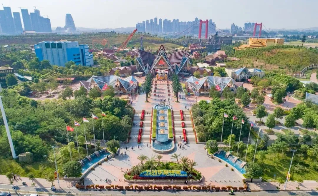 乐园位于南宁青秀区青环路66号,倚青秀山,沿邕江而建,园区包含了东南亚风情街、五大主题餐厅、十一大室内主题项目及三十多项室外游乐项目。包含了国际一流的VR Soaring高空飞翔体验项目【伴你飞翔】、拥有全球最大的超级弧形巨幕影院【走进吴哥】、魔球表演剧场【千岛之歌】、360°环幕影院“【塔銮盛典】、以及广西首座木质过山车【丛林飞龙】和众多经典的亲子主题游乐项目。