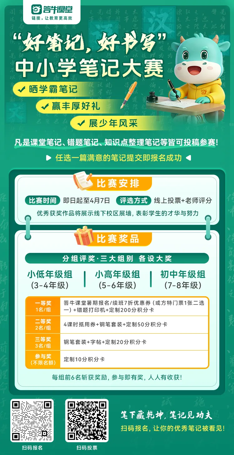 本次笔记大赛由南宁答牛课堂老师对参赛笔记进行评审,老师将从【准确性*20分 】【逻辑性*20分 】 【实用性*20分】【创新性*20分】【美观性*20分】五个维度对参赛笔记打分。