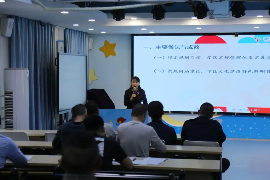 会议伊始,学区长李若梅反馈 2025 年南宁市青秀区学区制发展性督导评估结果,精准解读评估报告,既肯定了学区在教育教学、校际协同等方面的成效,也指出了学区后续发展需整改提升的问题。