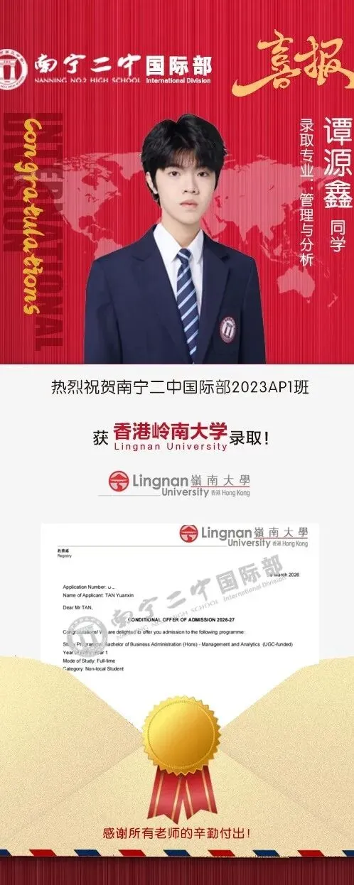 作为一所新兴研究型大学,默塞德分校拥有现代化的校园与设施,注重本科生科研参与,提供丰富的研究机会与奖学金。学校致力于服务加州中央谷地区,与当地社区、企业深度合作,毕业生在科技、能源、教育、公共服务等领域就业良好。其年轻活力、创新氛围与高性价比,使其成为美国本科留学的热门新兴选择。香港岭南大学是香港唯一的公立博雅大学,2026QS 全球 701–710 位区间,位于香港屯门,以博雅教育与人文社科见长。学校秉承 “博雅教育、服务社会” 理念,注重全人发展,开设文、商、社等学科,经济学、社会学、哲学、历史、翻译等专业实力强劲,商科课程注重实践与伦理,毕业生人文素养与综合能力突出。