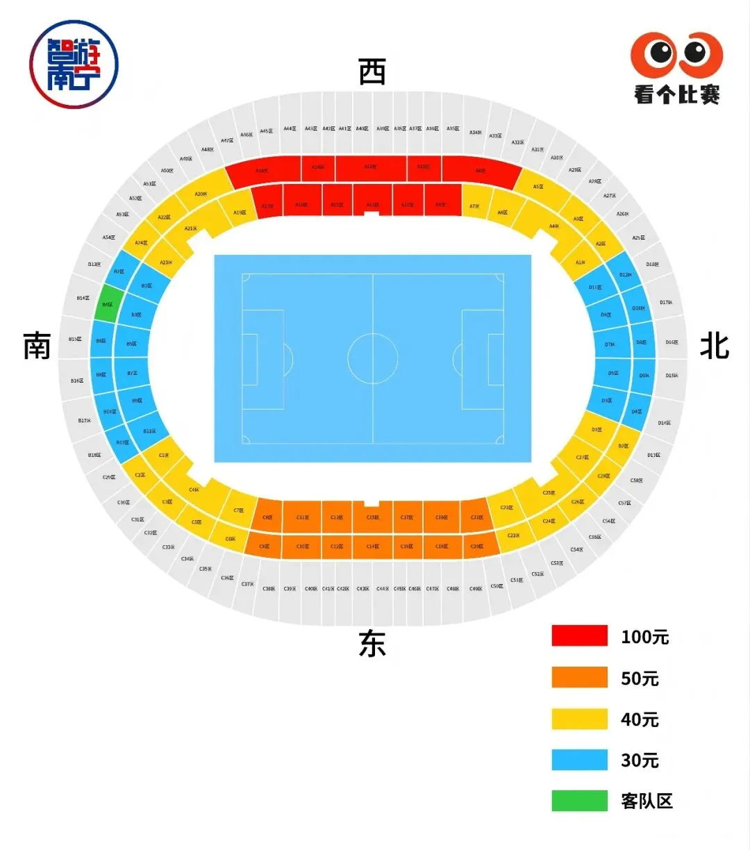 按看台区域划分,沉浸式感受赛场激情!