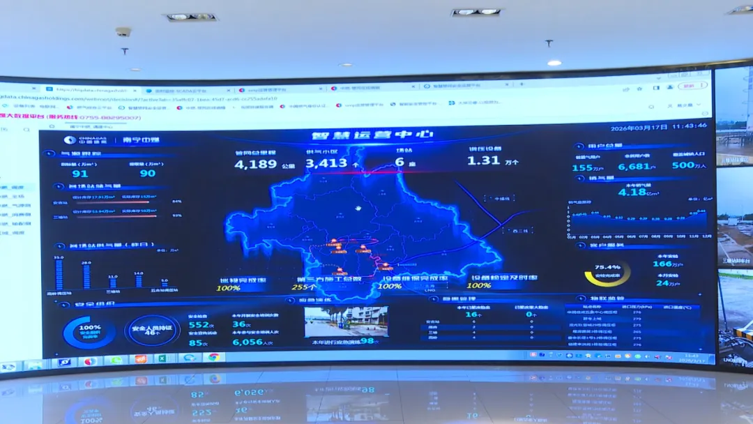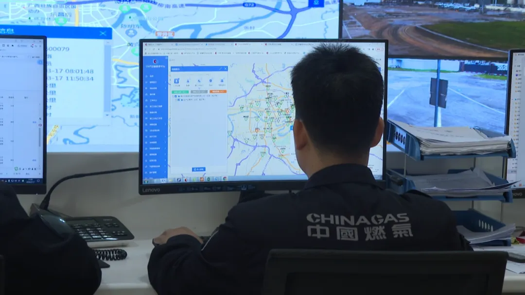 近年来,南宁中燃在燃气安全工作上不断加大科技投入。在南宁中燃调度中心,工作人员可随时查看全市各供气站、燃气管网线路、重点监控区域的相关信息,并通过物联网、大数据等技术,第一时间掌握全市用气情况,以科技赋能,实现燃气管道运行管理的可视化、智慧化、数智化。