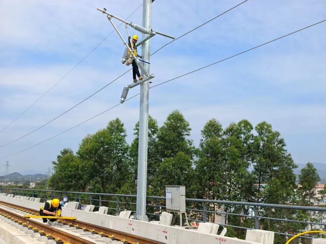 3月14日,中铁电气化局北京电化公司参建的南珠高铁玉林北至岑溪东段,首组接触网铝合金腕臂成功安装,标志着全线接触网工程进入上部设备安装阶段。中铁电气化局主要负责全线通信、信号、信息、灾害监测、接触网、电力、牵引变电及四电房屋工程。其中接触网工程腕臂共计5814套,全部采用铝合金接触网腕臂。3月13日,中铁电气化局北京电化公司参建的南珠高铁玉岑段项目,首条10kV电力贯通电缆在DK245+830基站-DK246+580区间敷设成功,标志着南珠高铁玉岑段电力工程高压贯通电缆敷设全面迈向冲刺阶段,为全线“电通”打下基础。据悉,玉岑段全线新建10kV配电所2座、10kV外电源线路4路,10/0.4kV变电所6座,10kV箱式变电站44座,电力贯通线高压电缆785条公里。南珠高铁玉岑段(含玉林北至岑溪东段、岑溪东至桂粤省界段)是南珠高铁南玉段的延伸,线路西起玉林北站,向东经北流市、容县至梧州市岑溪市,新建容县南站和岑溪东站,正线全长110.309公里,设计标准为时速350公里的高速铁路,是广西全面融入粤港澳大湾区的重要工程。截至目前,项目相关进展如下:2月12日,南珠高铁玉林北至岑溪东段区间正线铺轨完成;容县南站和岑溪东站站房主体工程已完工,目前进入装修阶段;当前项目团队正加速推进站线道岔铺设、无缝焊轨和轨道精调工作,为全线静态验收、联调联试做准备。根据规划,南珠高铁玉岑段力争在2026年年底先行开通运营,届时南宁至岑溪的旅客列车运行时间,将由现在的约5小时缩短至1.5小时左右。