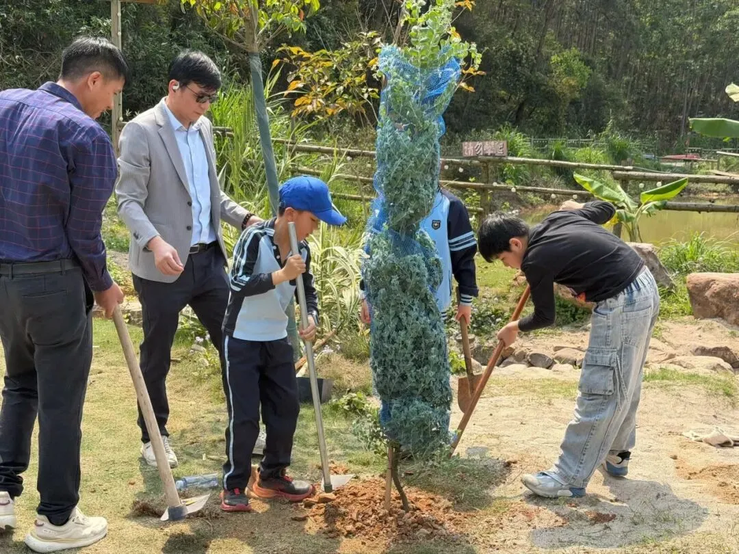 活动现场,长虹校区第二党支部书记、德育副校长聂芬,广西革命纪念馆党总支书记、馆长何建波先后致辞。寄语同学们如小树苗般扎根沃土、向阳成长,在植绿护绿中厚植家国情怀、传承红色基因。随后,党团队成员分工协作、挥锹培土、扶苗浇水,亲手栽下新苗,以绿意寄哀思,用实际行动缅怀英烈,让红色基因与绿色希望一同扎根心田。