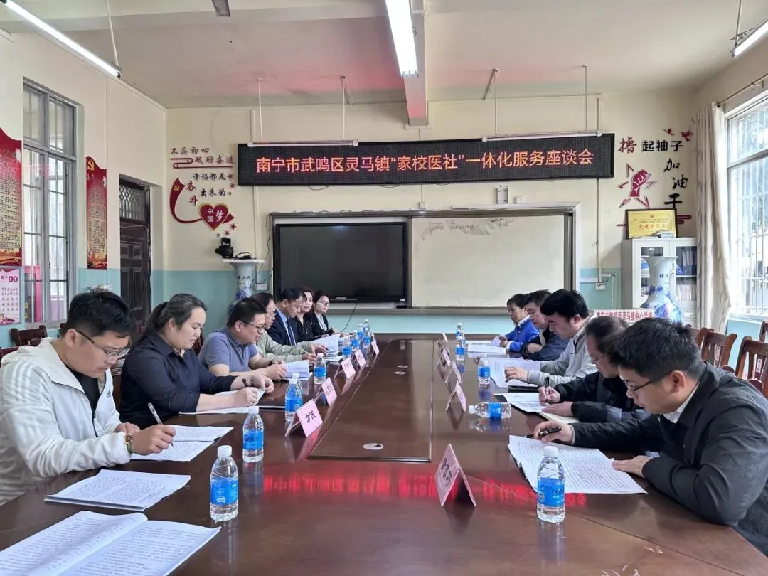 义诊结束后,我院领导及专家团队与武鸣区教育局、灵马镇政府、学校、卫生院及关工委相关负责人召开了心理健康工作座谈会。