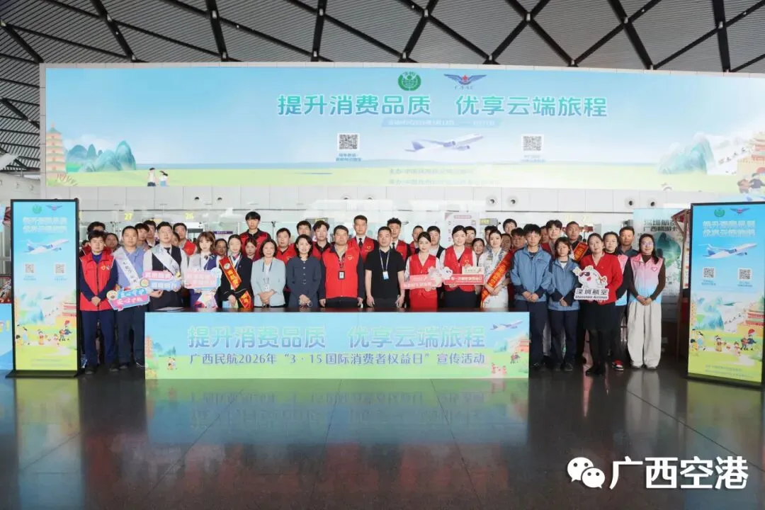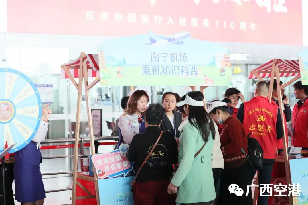 近日, 南宁机场联合民航广西监管局、多家驻场航空公司,在航站楼内举办以“提升消费品质,优享云端旅程”为主题的“3·15”国际消费者权益日宣传活动。活动涵盖乘机知识科普、安检知识科普及特色产品展销等主题宣传与市集活动。