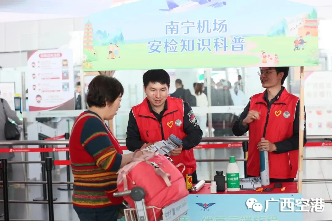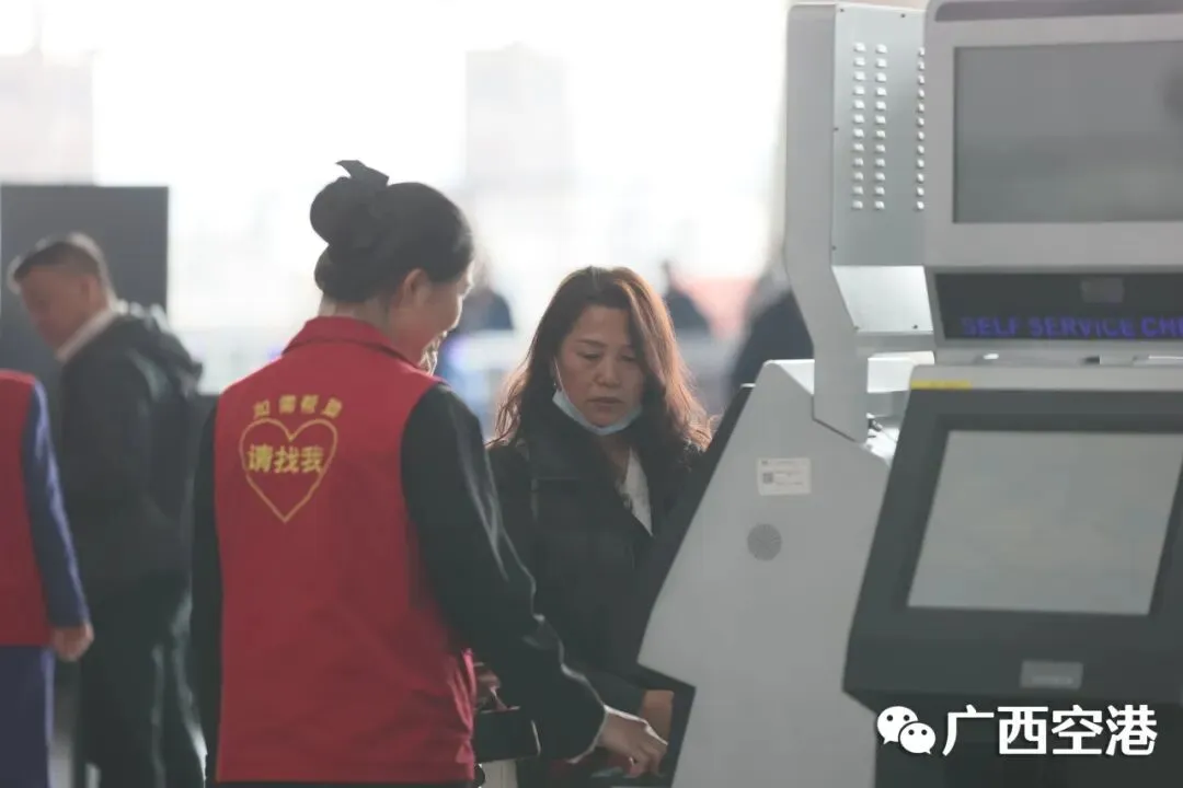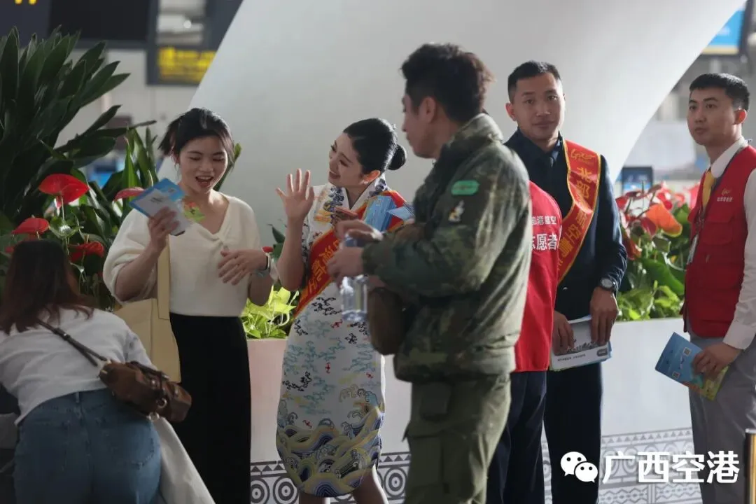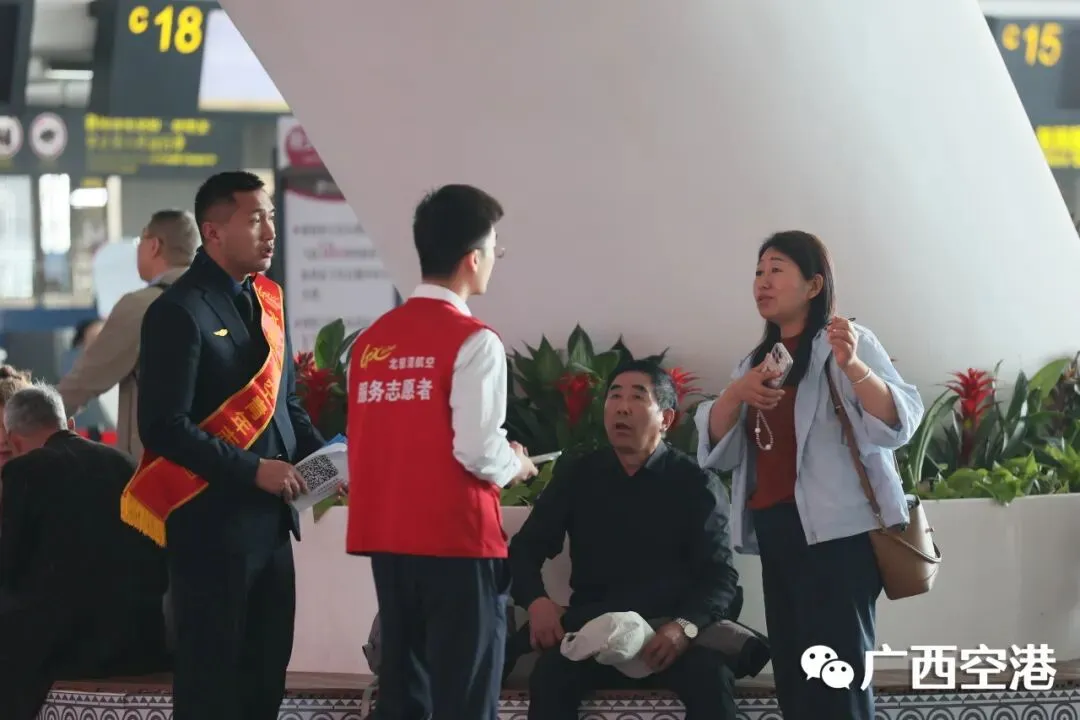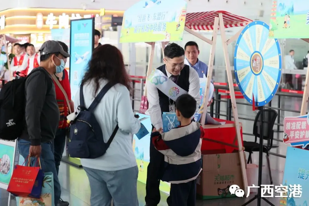南宁机场携手驻场航空公司,组织“红马甲”志愿者团队为旅客提供乘机指引、特殊旅客帮扶等暖心服务,让旅客在体验趣味互动的同时,享受便捷的出行服务。