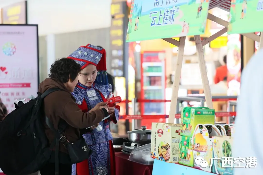 市集活动现场,工作人员通过发放《南宁机场中转服务指南》《首乘旅客服务指南》等宣传手册及现场一对一答疑的方式,向旅客详细介绍“经邕飞”“11免11优”系列服务产品,同步普及行李运输规定、航班延误处置流程、退改签权益及维权渠道等乘机知识,帮助旅客更好地了解服务政策、掌握出行要点,助力旅客轻松掌握便捷乘机技巧,进一步提升出行体验与满意度。