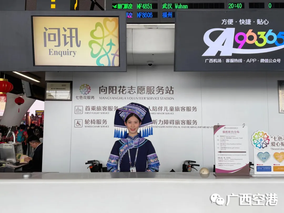 南宁机场坚持以旅客需求为导向,用心用情做好全流程服务保障。持续开展“暖冬行动”志愿服务,聚焦老年人、无陪儿童、病残旅客等群体,创新推出“三色爱心贴”“向阳童行暖心包”等特色服务,让特殊旅客出行更安心。优化航站楼引导标识,完成停车场缴费“三码合一”,让旅客换乘更清晰便捷。动态优化机场巴士班次与线路,保障旅客高效集散。同时,南宁机场的“11免11优”系列增值服务,可为符合条件的中转旅客提供免费住宿、免费餐饮、延误航班改签补助、旅游消费补贴、免费头等舱通道等专享权益,全面提升中转旅客乘机出行效率以及在食、住、行、游、购等各环节的服务体验。
