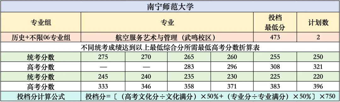 >南宁师范大学2025年舞蹈类录取最低分及专业/文化分段表