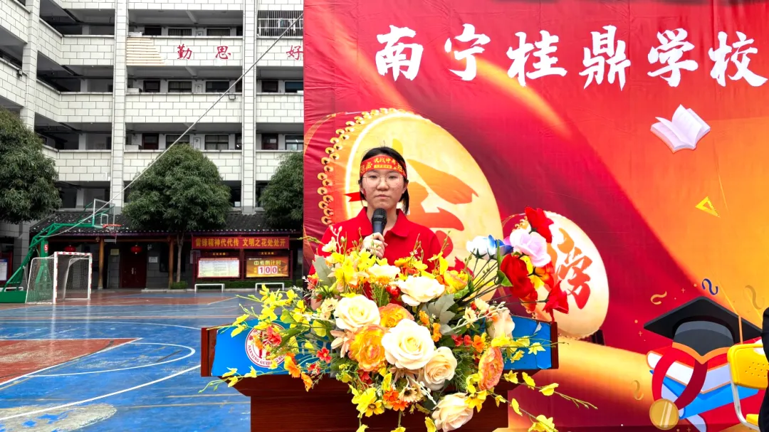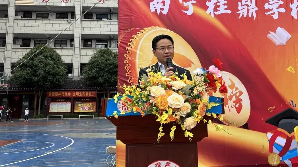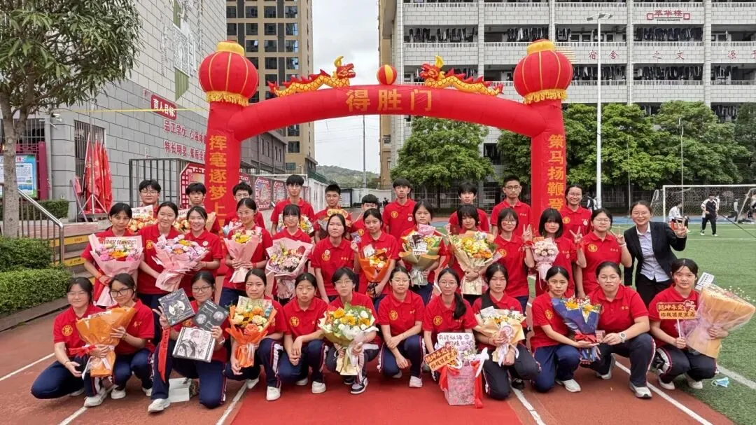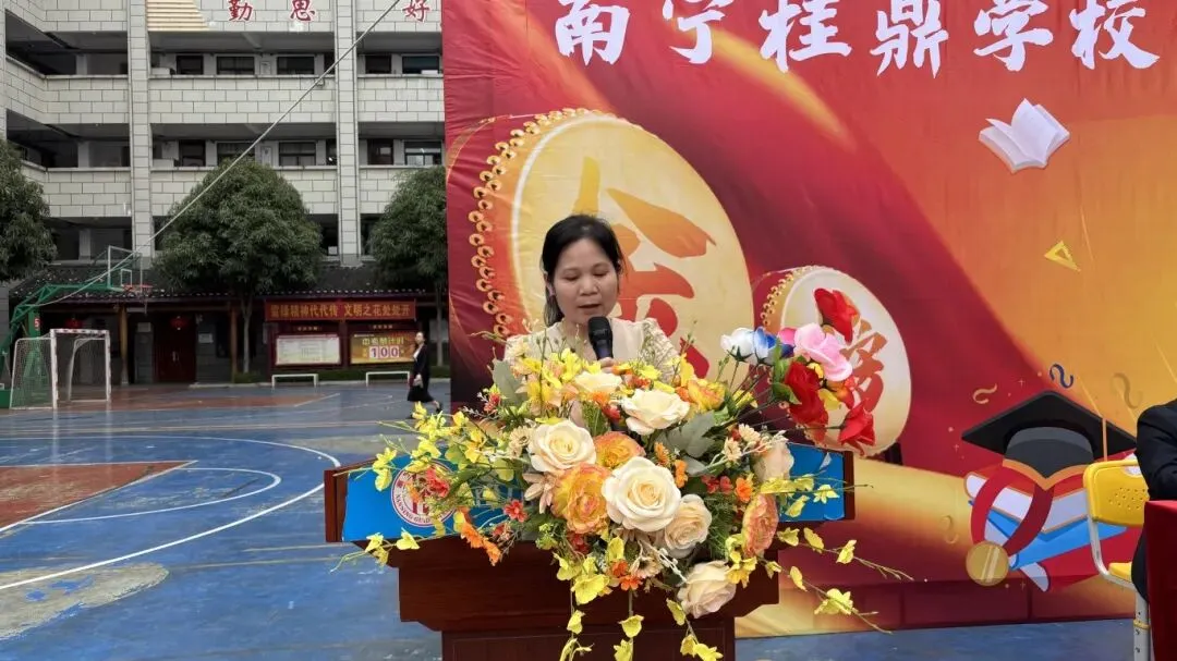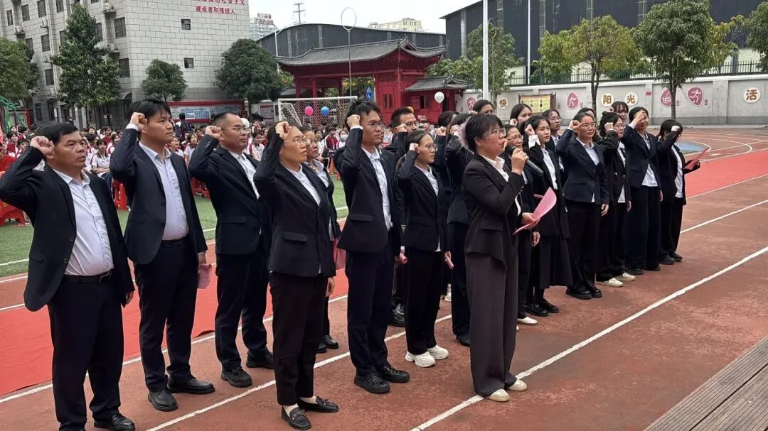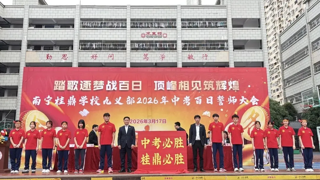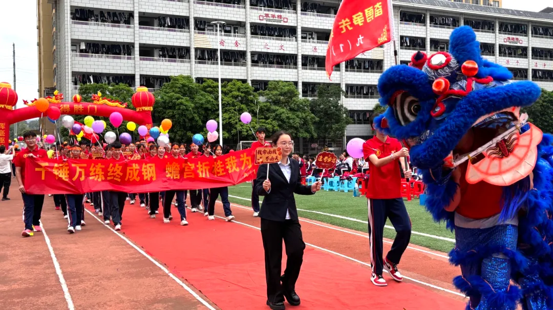随后,卢校长将象征着胜利与使命的“中考必胜”大旗,郑重授予九年级的三位班主任。红旗挥舞,斗志昂扬,寓意着中考征程正式进入全力冲刺阶段。