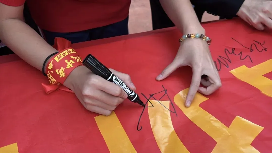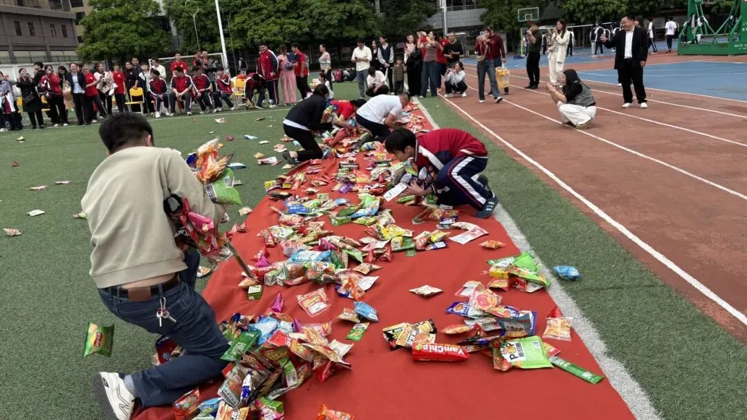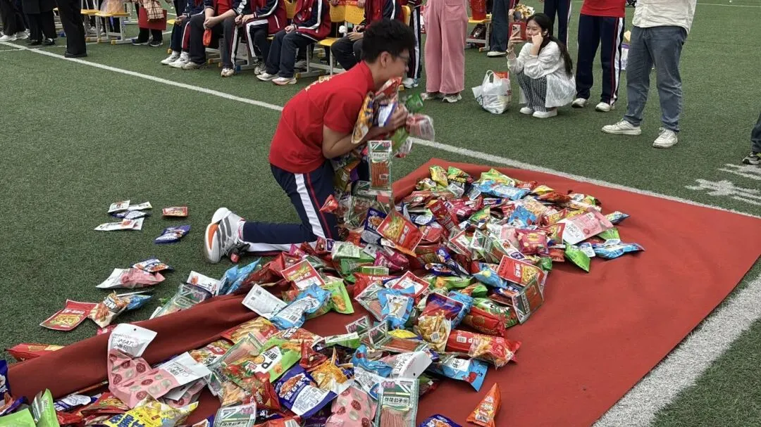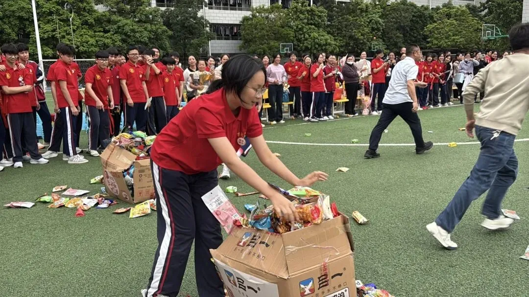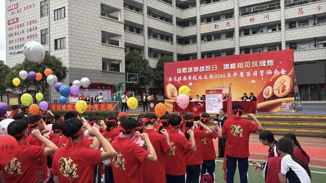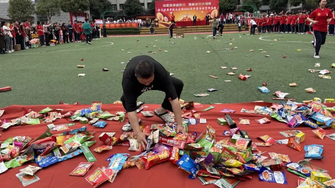 最后,与会领导、师生纷纷在励志横幅上郑重签下自己的名字,许下对百日后辉煌的庄严承诺。大会在充满欢声笑语的“抢零食”互动环节中圆满落下帷幕。