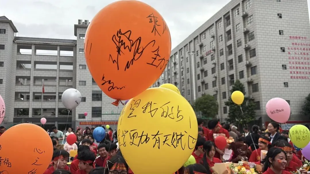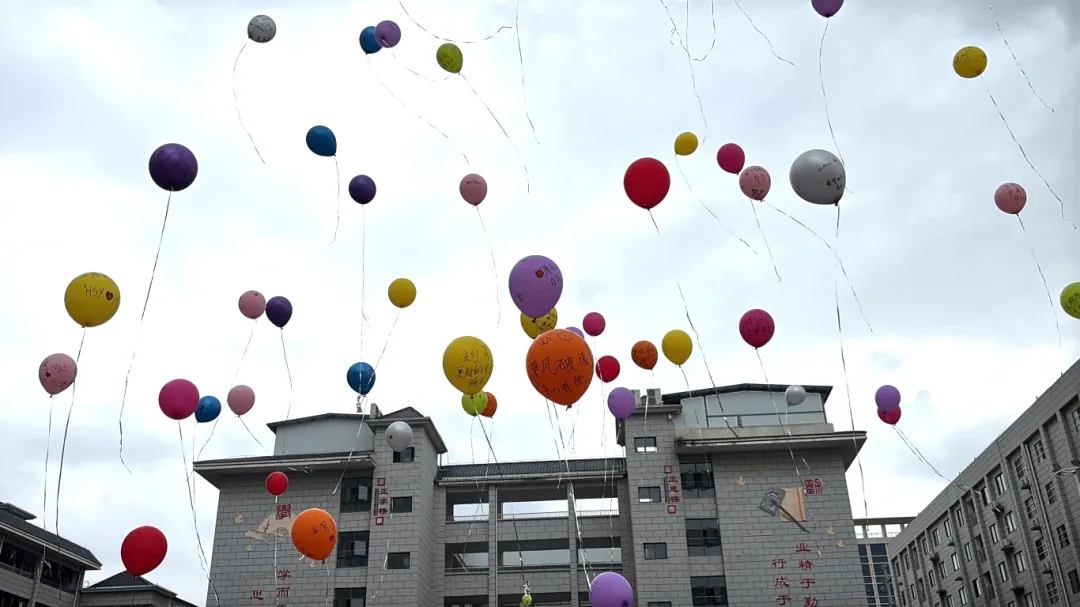 随后,150只承载着学子们梦想与心愿的氢气球同时升空,翱翔于蓝天,寓意着理想启航,前程似锦。