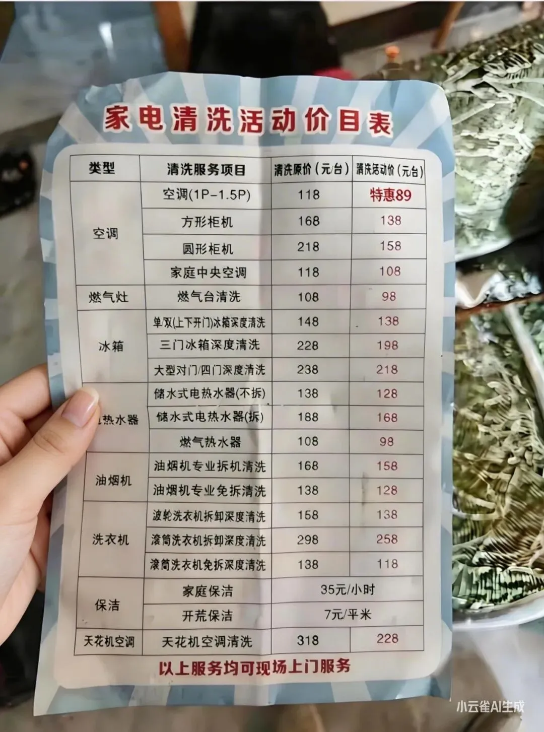 服务贴心,有保障:修完之后,我会简单清理一下现场28。而且,我对维修过的部件提供3个月的质保期,万一同样问题再出现,免费返修2。除了维修,我也提供空调、洗衣机、油烟机等家电的深度清洗服务,有明确的活动价目表38。