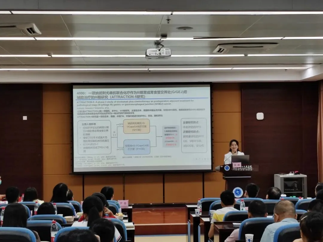 随后的学习培训环节,由广西中医药大学第一附属医院肿瘤科王志光教授、广西医科大学附属肿瘤医院梁嵘教授、周绍章教授、广西区人民医院化疗科谢嫣嫣教授、我院肿瘤科主任罗敏教授,就肿瘤相关质控内容作精彩授课。各位专家分别就肺癌、胃癌、结直肠癌、乳腺癌、肝癌等最新治疗进展进行深入的讲解。另外,我院肿瘤科团队、南宁市第一人民医院肿瘤科团队、宾阳县人民医院肿瘤科团队、南宁市第十人民医院肿瘤科团队分别带来了精彩的病例分享。