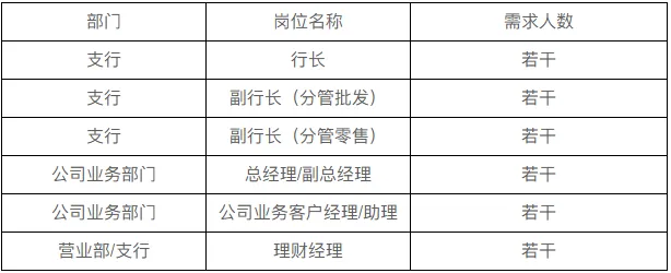 · 6年以上银行相关工作经验,3年以上批发银行业务及网点相关经营管理经验