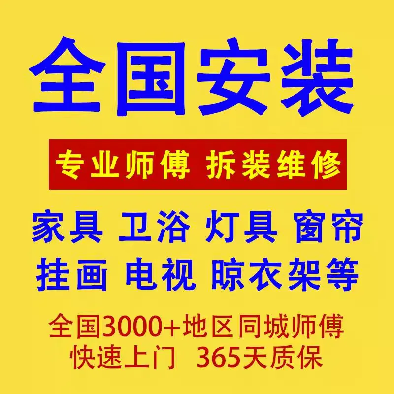 专业水电安装服务,卫浴,灯具,窗帘,晾衣架,家居安装服务覆盖多区域。