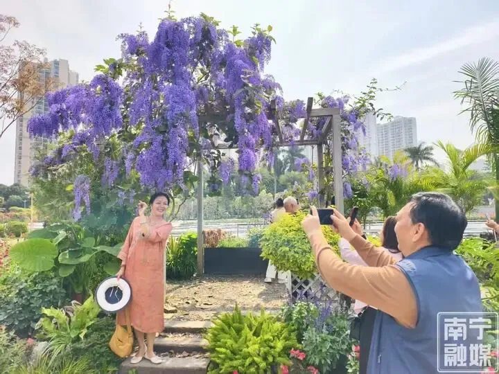 出片绝美!南宁的花花又上新了!这个公园里的蓝花藤开成紫色瀑布