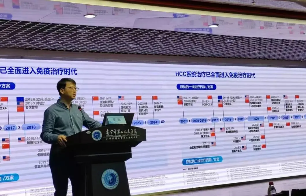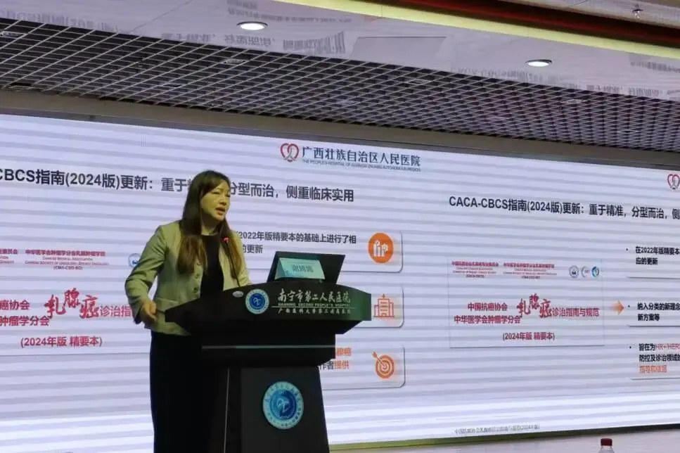 随后,由广西医科大学附属肿瘤医院梁嵘教授、广西中医药大学第一附属医院肿瘤科王志光教授、石玮教授、广西区人民医院化疗科谢嫣嫣教授、我院肿瘤科主任罗敏教授,就肿瘤治疗新进展作精彩授课。