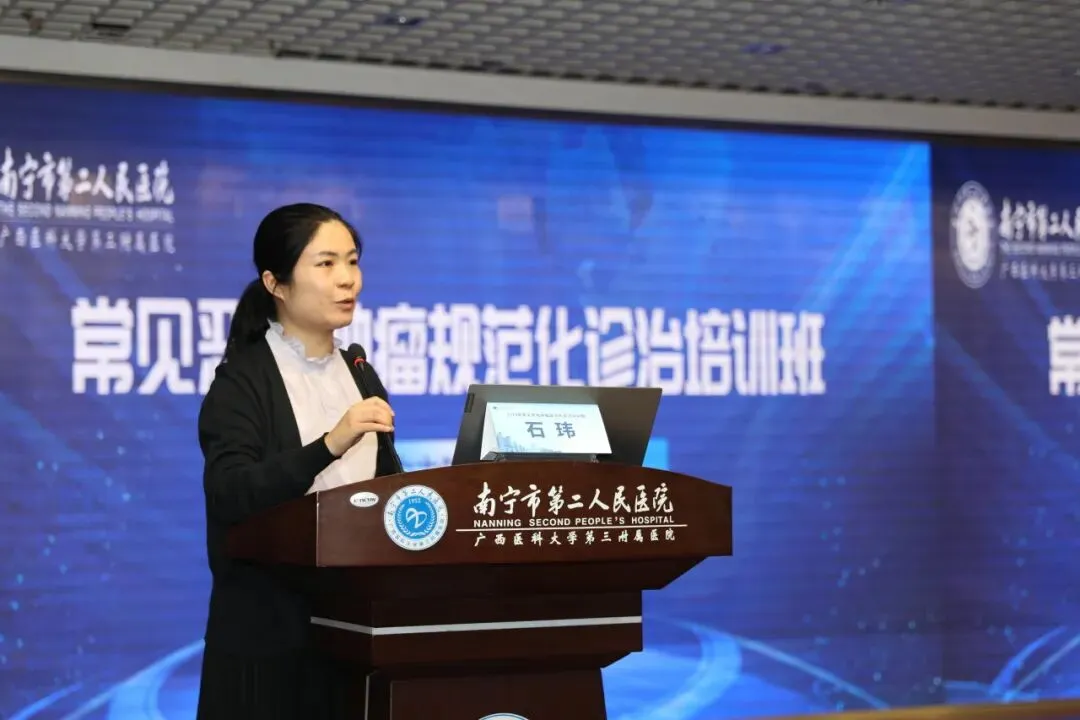 在学习培训环节,我院副院长致辞,他表示南宁市第二人民医院作为肿瘤质控中心挂靠单位,要继续在南宁市卫健委的领导及指导下,做好肿瘤质控工作,在肿瘤的规范化治疗上做好模范带头工作。希望本次培训班可以提高在人才培养、学科建设、日常监督、技术共享等方面的交流,共同为提升南宁市肿瘤诊疗质量出谋划策、再立新功,为人民群众的身体健康保驾护航。
