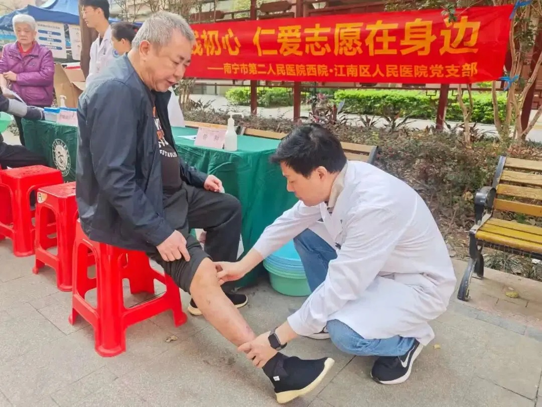 医院坚持以人民健康为中心,充分发挥医疗行业优势,2025年3月,组织创伤手外科、脊柱外科、胃肠外科、急诊科、妇科、产科、中医科、西院等40多个科室医疗志愿者分别前往邕江明珠广场、梦之岛江南店广场、三叠石便民市场、同乐村委、云顶印象小区、隆源华府小区、医院定点帮扶村等开展了15场健康义诊活动。