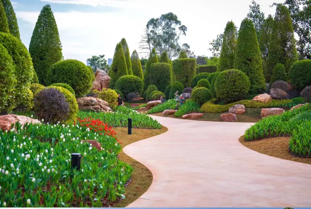 丘石花园为青秀山南片区首个植物专类园,占地约260亩。该园依托“山—坡—谷—水”地形特色,通过生态环境修复打造树阵广场、塔塔花园、岩岩台地、浣花溪、玉兰花坡、花谷秘境等多个精品景点。