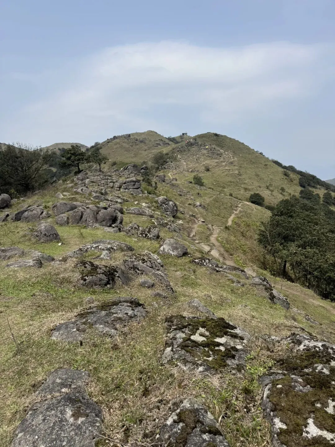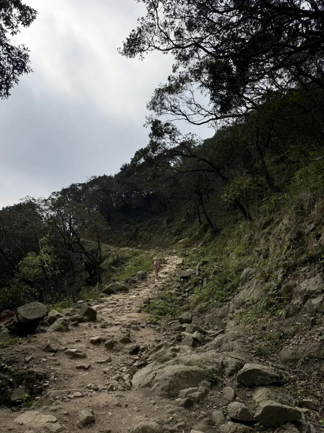 这里距离南宁市区开车1小时,以登山为主题,当你翻山越岭、历经艰辛,抵达山顶时,一幅幅美景在眼前划过,一切的努力都是值得的。这里是白凿山登山公园,位于兴宁区昆仑镇,公园免费开放,不收门票,设有停车场,停车收费10元。车辆可以开到半山腰的位置,一路都是水泥路,道路平坦,会车没有问题,交通便利。停好车后,走上山前面一小段是水泥路,之后都是泥沙和石头路,而且有些地方坡度比较大,有时候需要手脚并用,真正感受到了攀爬的乐趣。一路上也有不少家庭带着小朋友来爬山的,小朋友看起来一个个经验老道,徒步、爬山毫无压力,反而是大人在后面拖了后腿。山路大部分都是这样的原始状态,周末去的时候停车场都停满了,人还挺多的,一路上都有人,而且道路开阔,一条路上山下山,几乎没有茂密丛林,不用担心迷路。停车场有一些饮料和零食售卖,停车场和寺庙旁边各有一个厕所,沿途有垃圾桶。快到山顶时有一个岔路指示牌,一边通往白凿山山顶,一边通往三界碑,可以根据自己的选择前往不同的地方。我们选在右边的道路,去往三界碑。到了三界碑继续往前,是去往仙女峰的方向。我们到了一片大草坪就没有继续往前了,因为继续前往仙女峰可能还要几个小时。下山的路因为有沙石,且坡度比较陡,所以一些路段比较滑,很考验膝盖的承受力,一定要谨慎小心,否则很容易摔倒。爬山很有乐趣。当置身大山之中,清新的空气让人头脑清醒;崎岖的山路让你征服欲爆棚,同时注意力被转移,烦恼被抛到九霄云外,这是大脑最放松的时候;另外,一路的美景和小鸟的高歌,让人卸下防备,心情也跟着脚步越走越愉快。自驾
