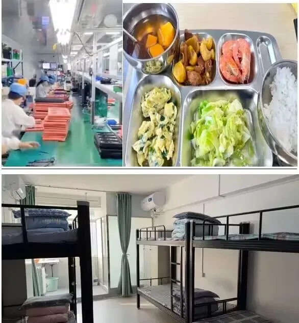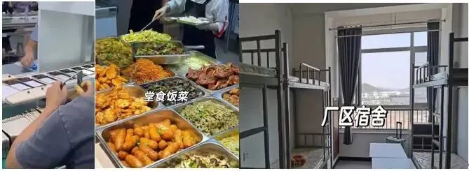免费住宿,周边吃饭便利,每餐6~10元,做满三天后每天下班可日结100元-150/天