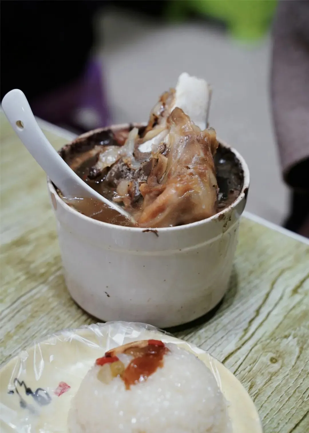 招牌莲藕筒骨加八宝饭,是我的标配,阿姨麻利地从蒸笼里端出炖盅,热气腾腾,香气扑鼻。