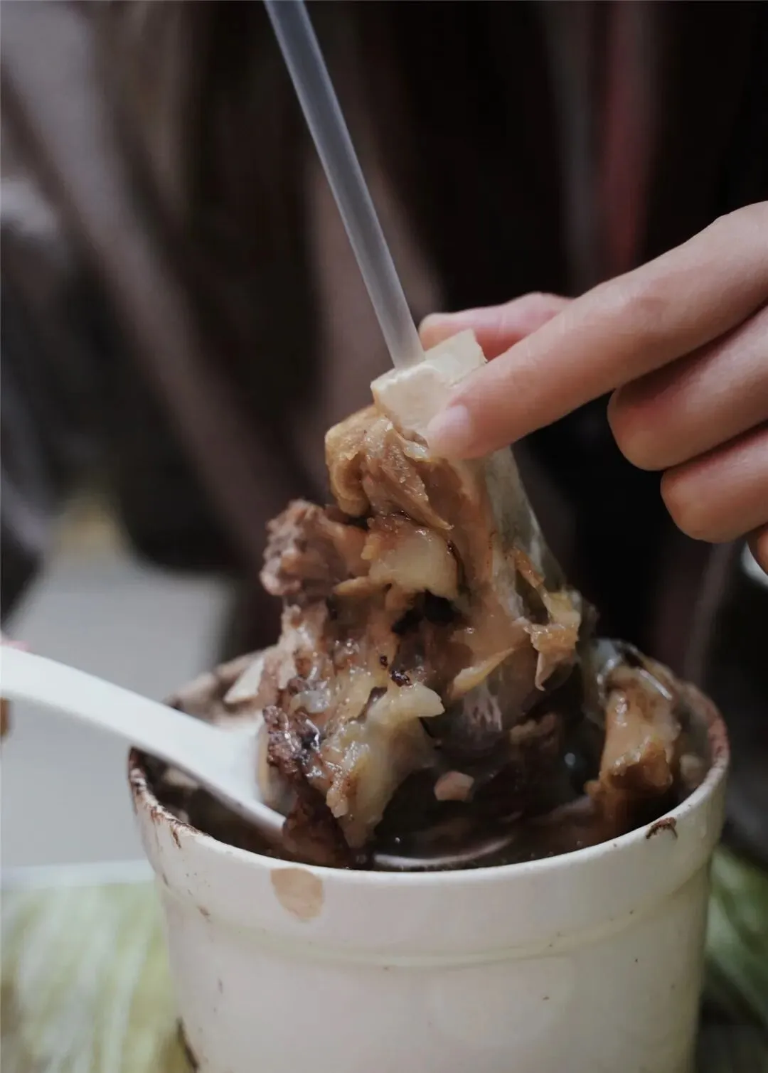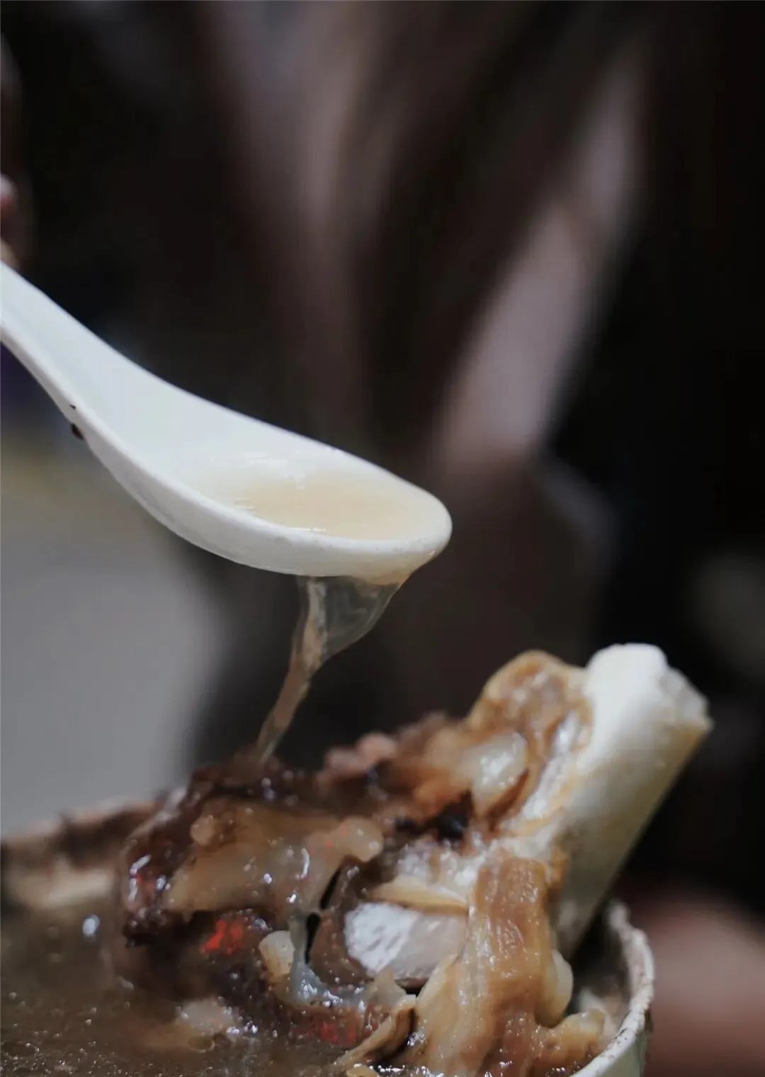 先别急着喝汤,先嗦一口骨髓才是重点,拿起吸管,轻轻一嘬,那一瞬间,饱满的骨髓滑进嘴里,丝滑、浓郁、香而不腻。
