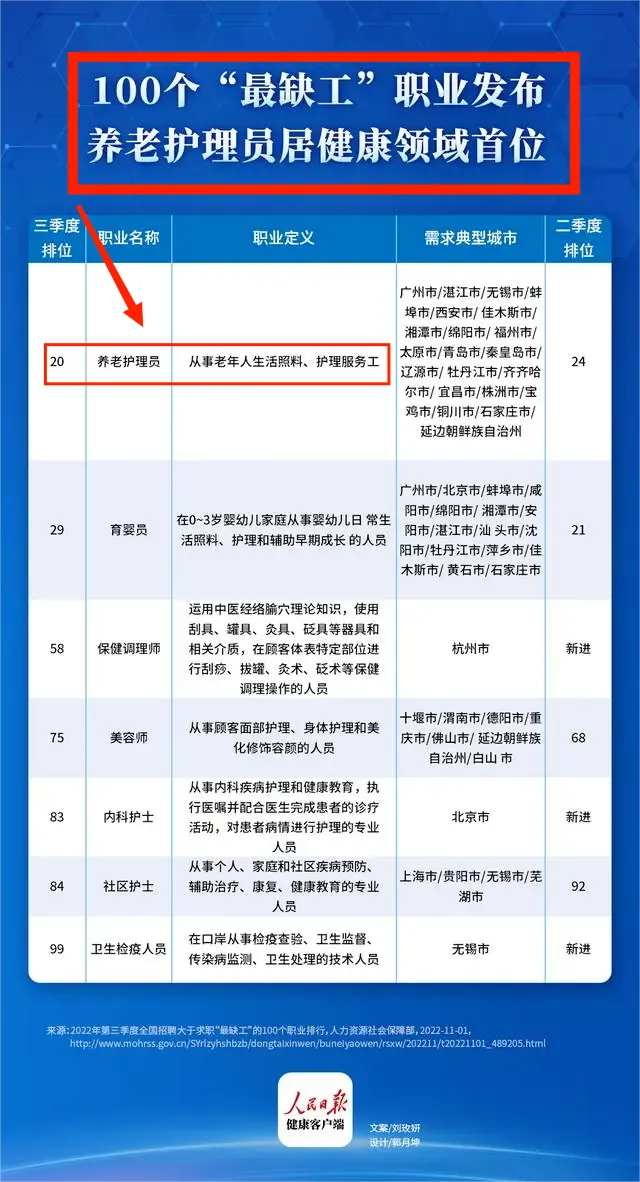 相关职业:护士、家政服务员、健康管理师等。