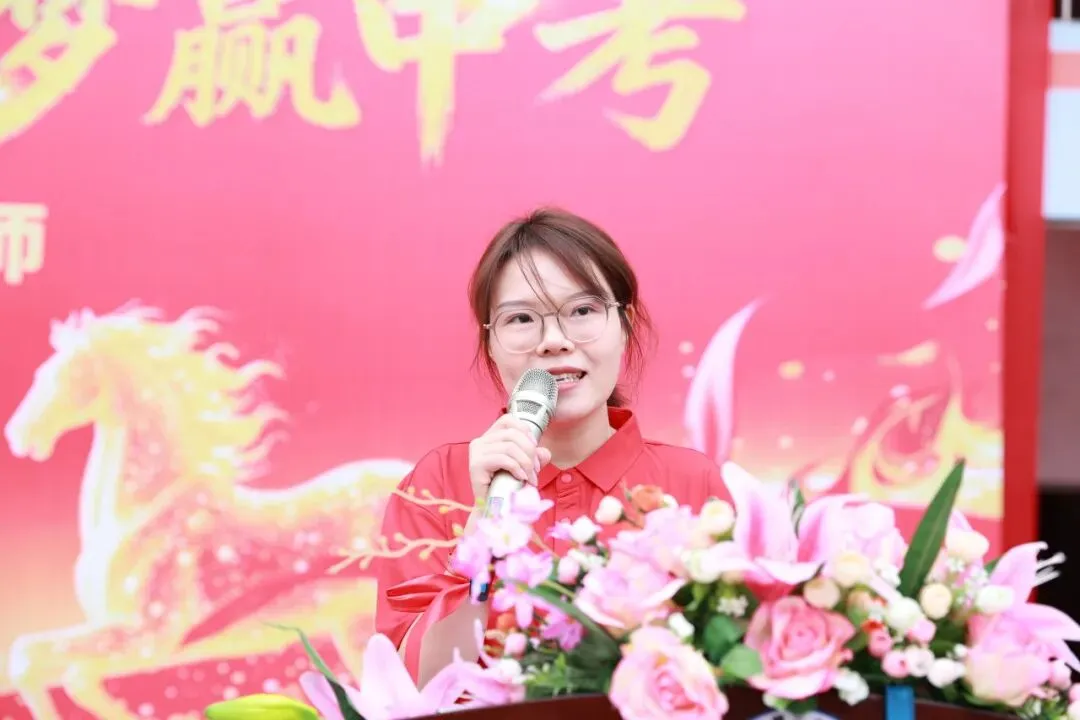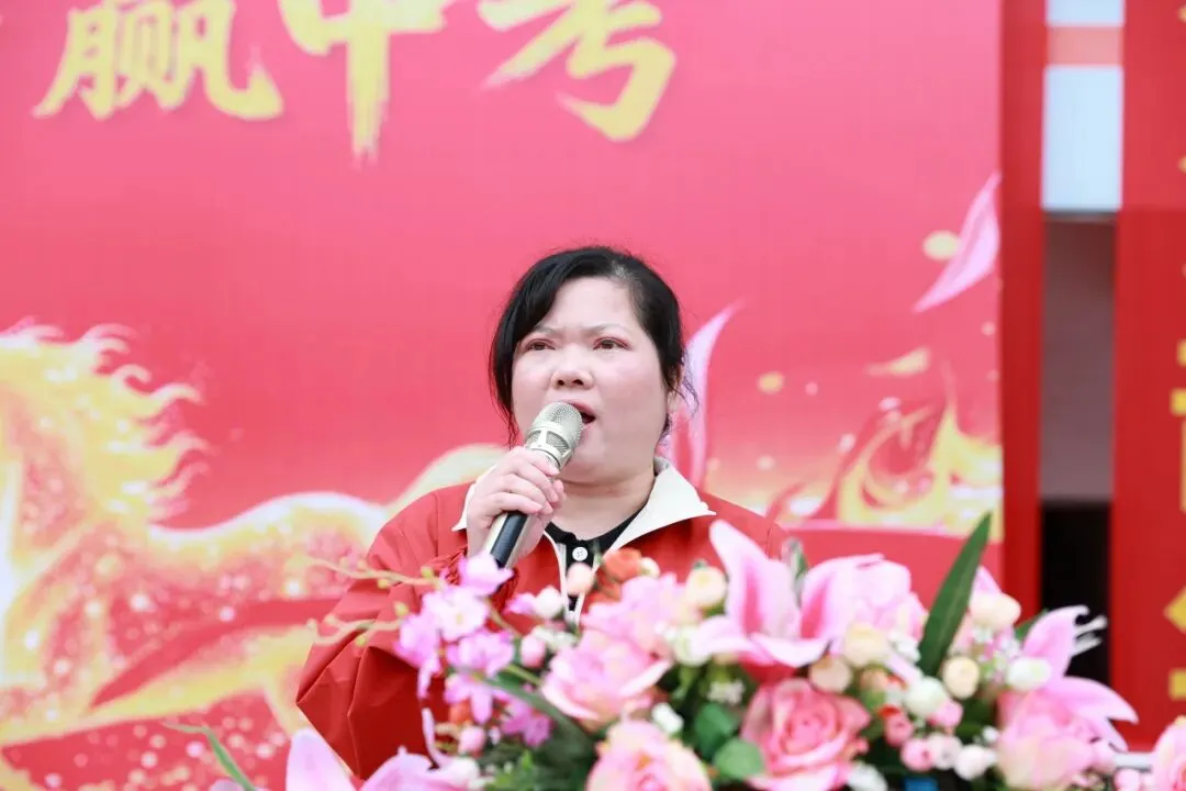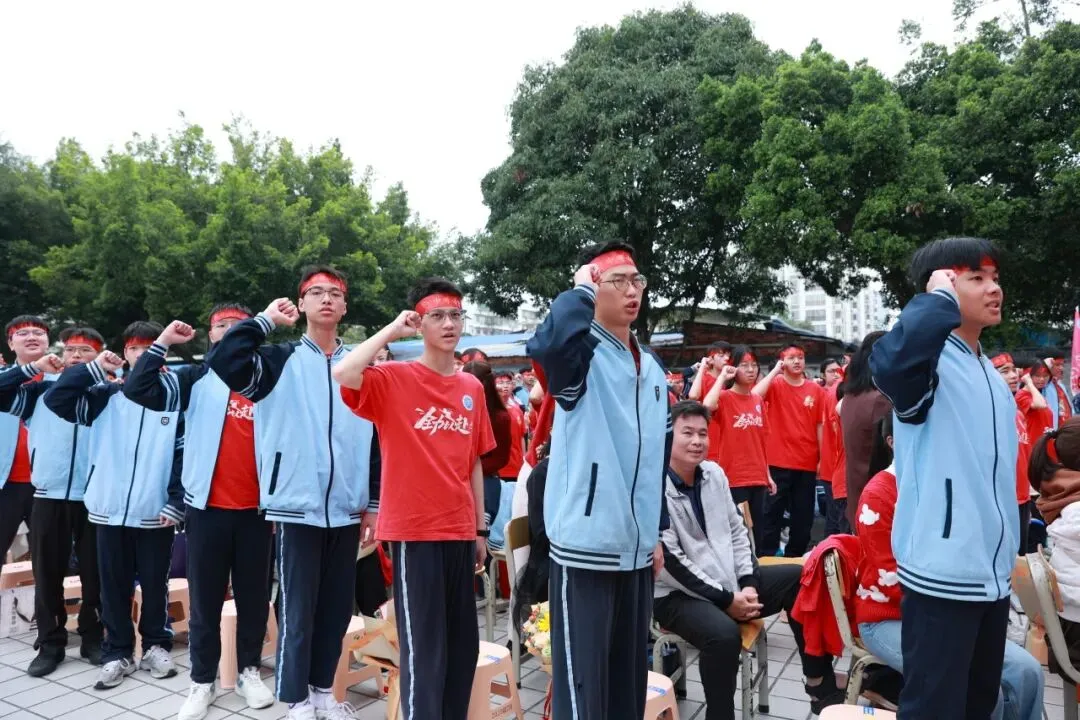 何惠老师、九(1)班的雷永涵同学、雷永涵家长依次代表发言,从师者的坚守、学子的决心到家长的支持,三方同心,共赴中考。全体教师庄严宣誓,承诺将以最坚定的信念、最务实的行动陪伴学子奋战百日。九(1)班许广俊同学领誓,全体阳光学子高举右拳,以青春的名义立下铮铮誓言,字字句句彰显着决战百日、决胜中考的坚定决心。