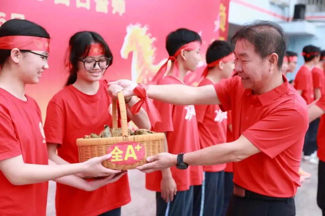 教室里,学子们在励志横幅上郑重签名、书写心愿卡,共同品尝甜糕粽,将百日冲刺的决心与憧憬落笔成章。