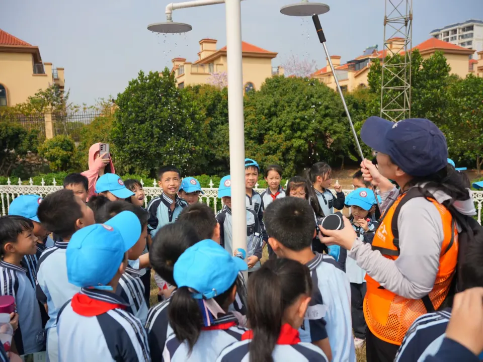 走进广西气象科普研学基地核心展区,参观气象观测设备(如自动气象站、雷达模型),了解气象数据采集与分析过程;结合南宁本地气象水文监测站点的实际工作场景,讲解气象预警如何为城市治水、防洪减灾提供数据支撑,让学生在实地观察中深化对气象工作与邕城治水关联的理解。