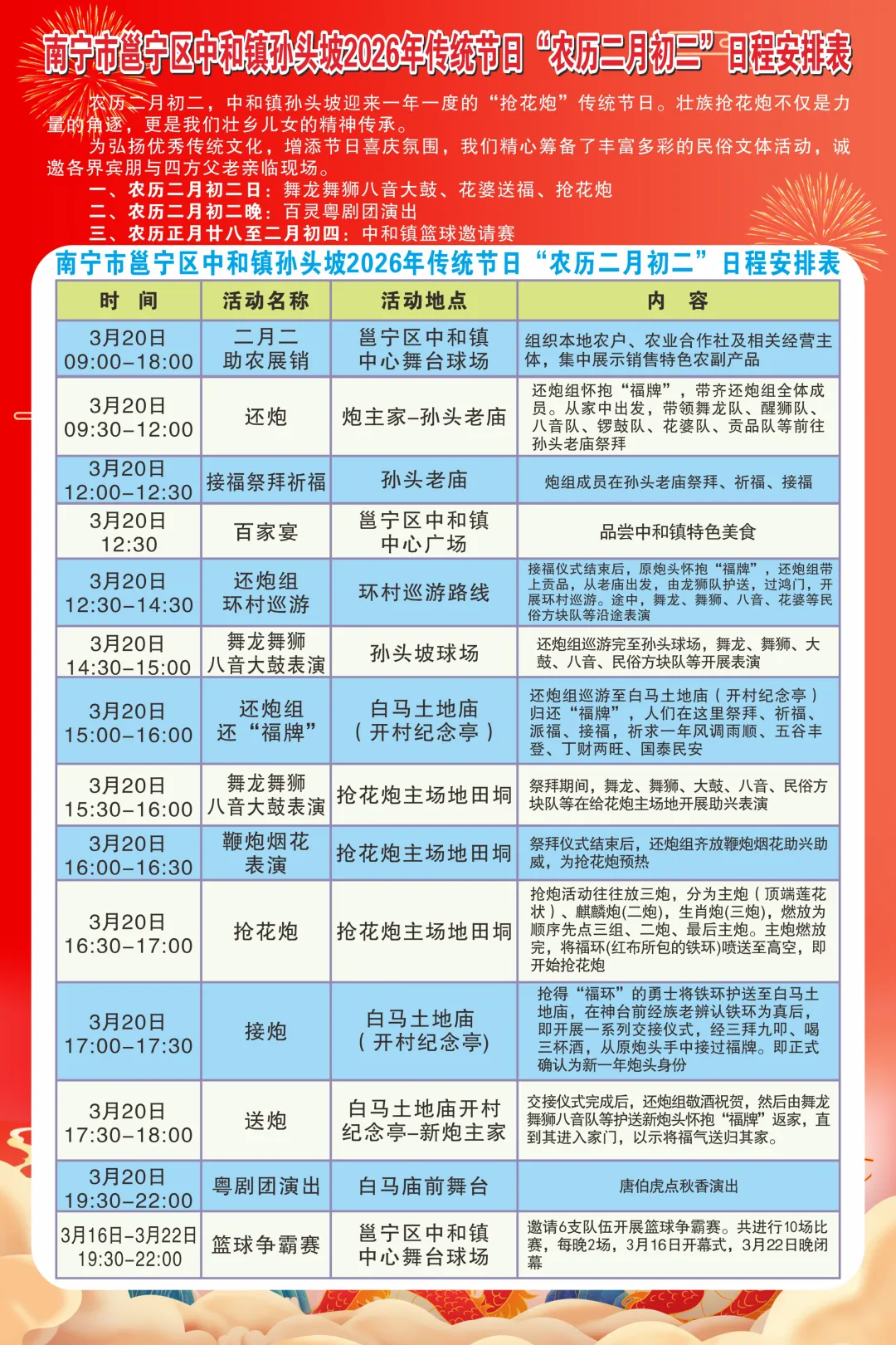 农历二月初二“龙抬头”南宁市邕宁区中和镇孙头坡一场激情与民俗交融的非遗盛典壮族抢花炮即将震撼上演!