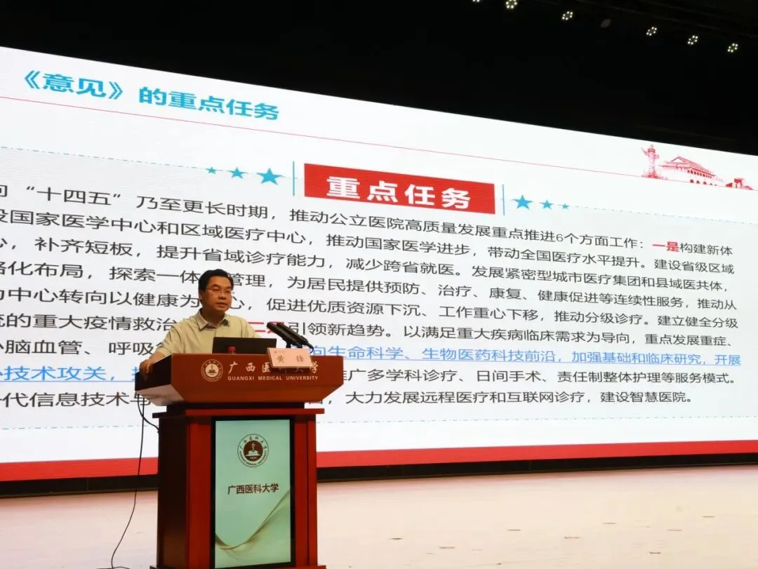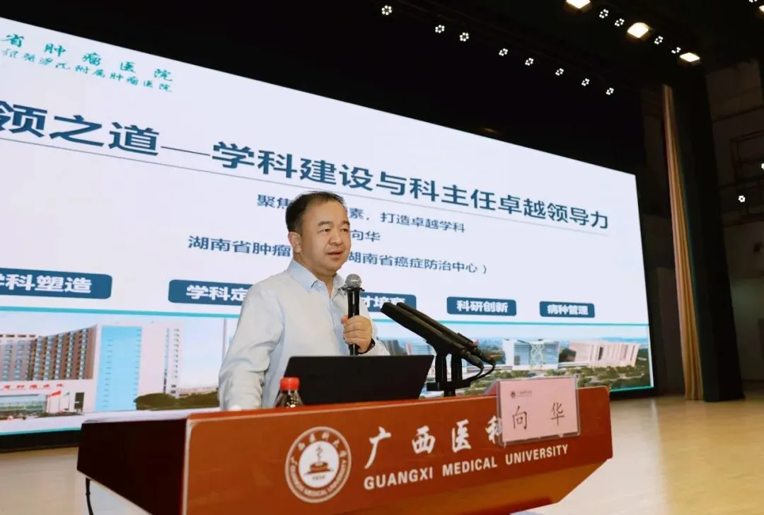 专题授课环节,医院聚焦“强学科提质筑峰 优管理赋能增效”年度工作主题,邀请了湖南省肿瘤医院院长向华,广西医科大学党委书记陈川,广西医科大学第一临床医学院、第一附属医院副院长黄锋,自治区卫生健康委直属机关党委专职副书记、一级调研员陈彦四位业内资深专家授课。