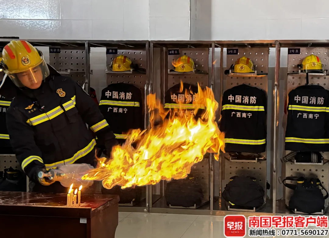 “喷火蛋糕”有多危险?南宁消防实验了,火舌长达70厘米