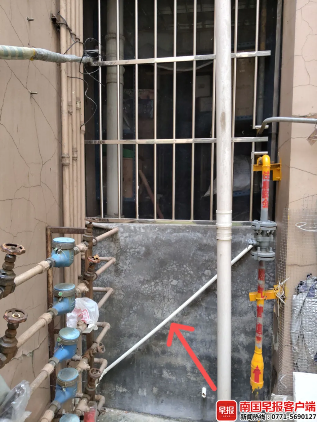 南宁一小区业主称家中污水倒灌,疑因邻居加建墙体所致