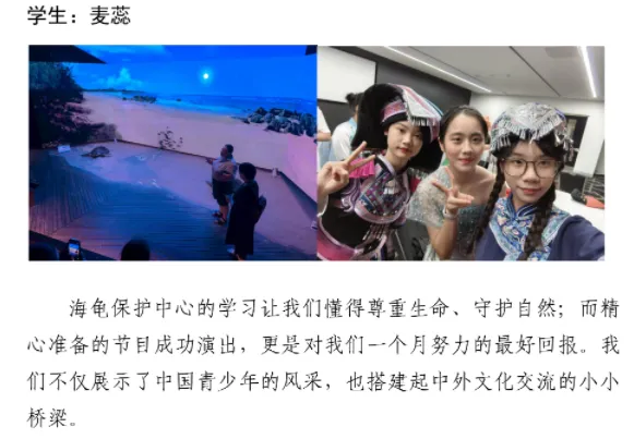 “台下此起彼伏的掌声与欢呼,让我们深深地体会到,文化的交流与共鸣,原来无需语言的桥梁!”南宁市三美学校的陈梓瑜同学在展演结束后感慨道。