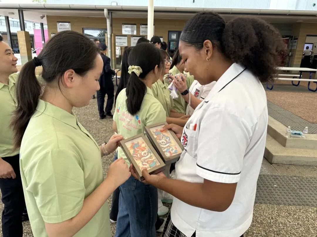 班达伯格文体中心内,暖意融融、掌声不息。来自南宁的同学们身着色彩斑斓的民族服饰,自信登台、从容展演,将中华优秀传统文化的魅力娓娓道来。娴熟流畅的传统八段锦舒展雅致,剪刀开合间剪出的精美剪纸栩栩如生,笔墨挥洒间书写的汉字刚劲有力,每一个细节都尽显中华文脉的深厚底蕴。