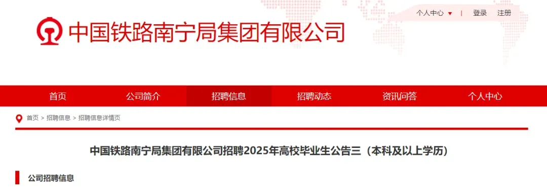 关于中国铁路南宁局集团有限公司的最新招聘信息,请关注公众号后在对话框中输入“南宁局”获取。