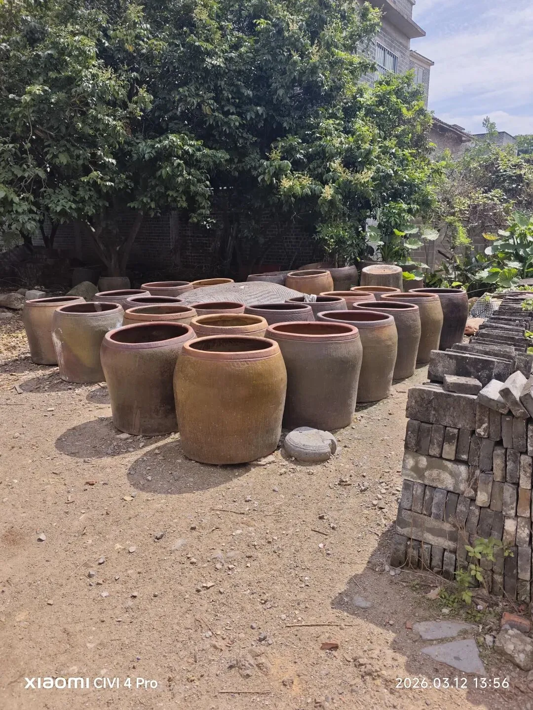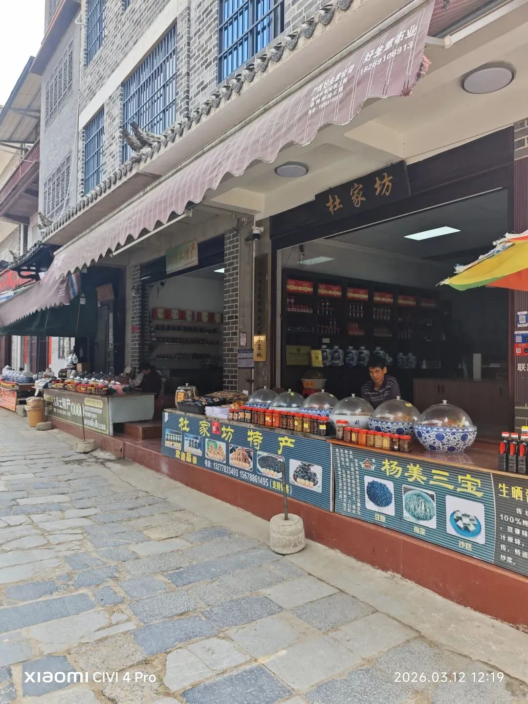 我们即将返程时,忽然想起忘记购买扬美的三宝" 扬美沙糕,豆豉,梅菜"。开车折返到集市,摆摊的阿婆说“你们难得来扬美一次,带些这里的特产回去尝尝。这包沙糕,xx元一包,豆豉xx元一包,这些产品都有食品卫生检测,已纳入自治区非物质文化遗产”。说完,她指着写有"自治区非物质文化遗产"的方牌。没有拒绝的词语,我伸手拿起一包色泽黑亮的豆豉,隔着包装袋,依然闻到它的香味。沙糕用糯米,白糖,芝麻制作而成,尝试过后,有芝麻香味,清甜爽口,唇齿留香。扬美的梅菜也不贵,几元一斤,是下饭的好菜。难怪走到每一处景点,必能看到三至五口以上的水缸。同伴说,因为制作扬美的"三宝”,都离不开这些水缸,所以随处可见。