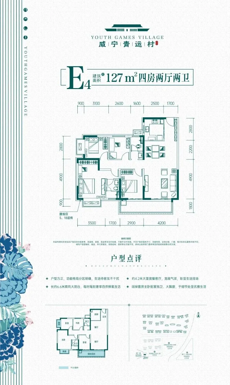 5栋:126-142㎡,2梯4户(26层)。