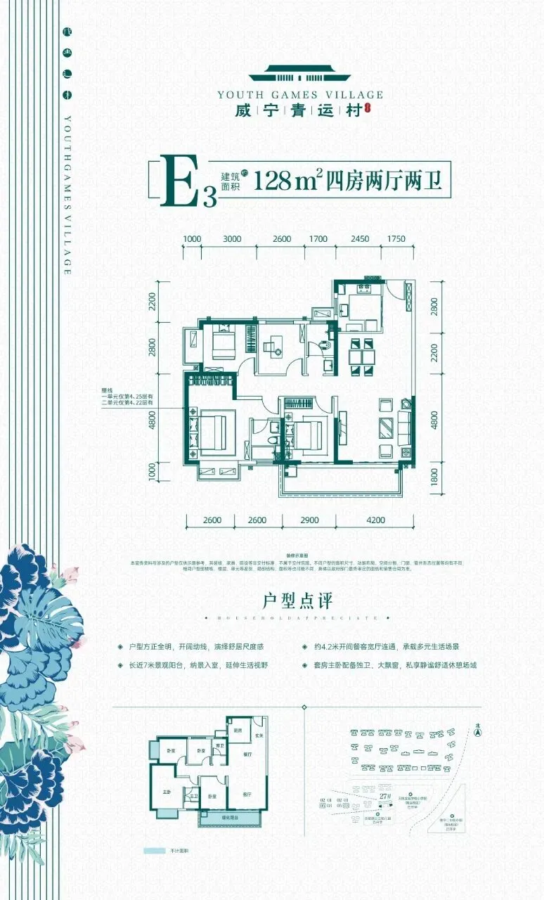 27栋1单元:104-122-128㎡,2梯4户(1单元26层;2单元23层)。