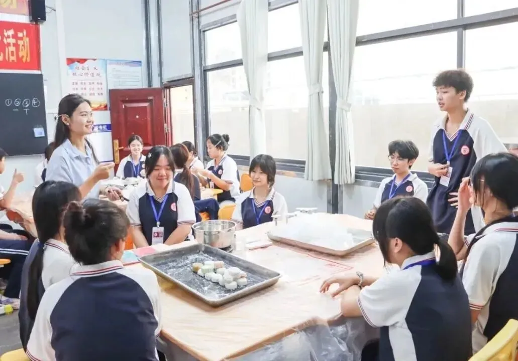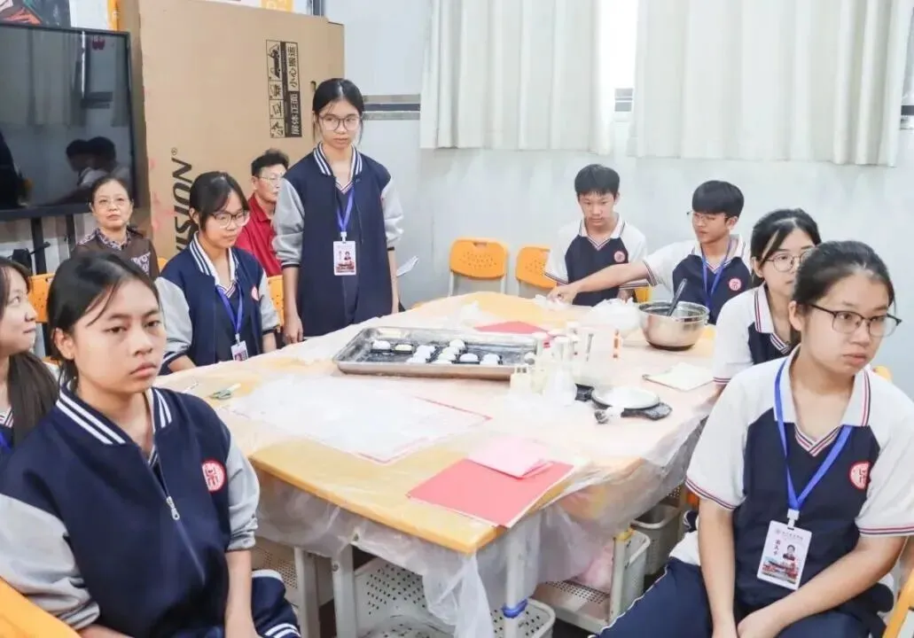 作为承办单位,桂鼎学校于9月30日上午在七楼教室组织评比。高中部蓝黄宁老师代表参赛。蓝黄宁老师执教课例《月满中秋,“劳”记初心——制作冰皮月饼中的劳动哲学与价值创造》,紧扣“国庆中秋”节点,以“价值创造”为主线展开教学。课堂通过“家国同构”情境导入,引导学生合作制作冰皮月饼并拼摆成国庆元素图案,同时抓拍劳动瞬间,引导学生从哲学层面理解劳动与个人成长、国家发展的关联,有效将劳动体验升华为价值认知。