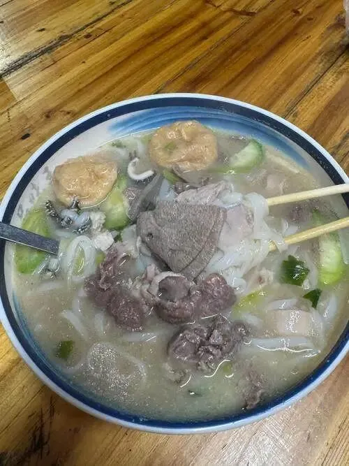 玉林人懂吃,但不精致,讲究的是一口鲜气。早上别找什么点评高分的店,本地人都在楼下的粉摊蹲着。一碗生料粥,猪杂切得极薄,猛火一滚就出锅。米香混着肉鲜,汤一喝,人就醒了。