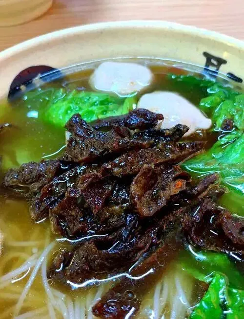 中午去吃牛巴粉。牛巴是用香料熬煮烘烤的牛肉,颜色深,嚼起来有韧劲,甜咸交织。粉条吸满了浓郁的卤汁,配上几颗酸豆角,解腻,开胃。不是那种吃一口就忘的味道,而是吃完还想打包一份带走。