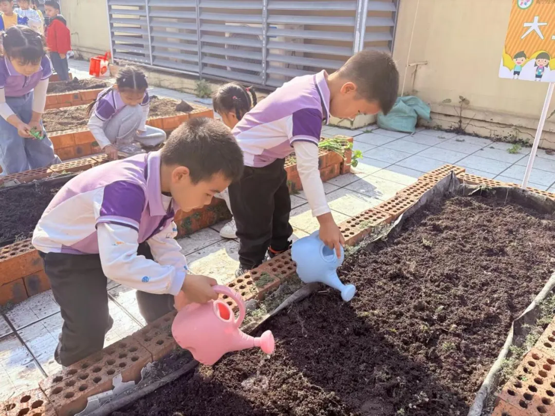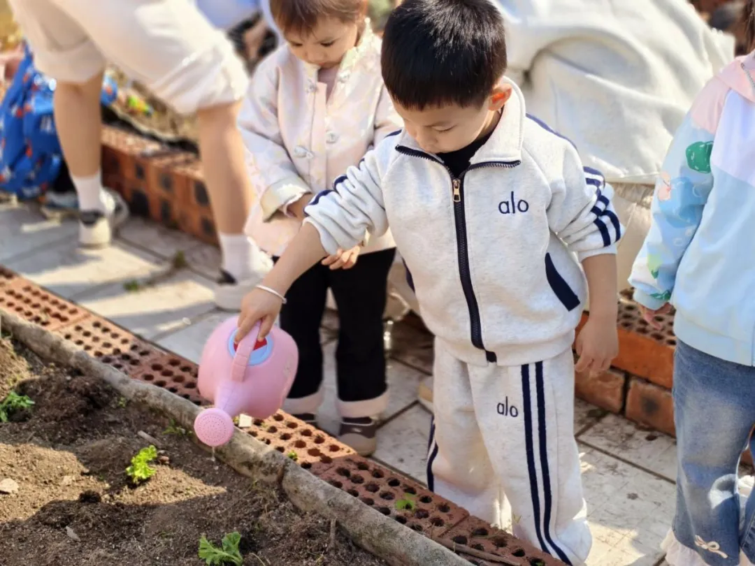 种植完成后,孩子们拿起小水壶,轻轻浇水,让甘甜的水分滋润每一颗种子、每一株幼苗。孩子们专注的模样、稚嫩的动作,成为春日里最可爱的风景,他们用小手种下的不仅是蔬果秧苗,更是对自然的热爱与对成长的期盼。