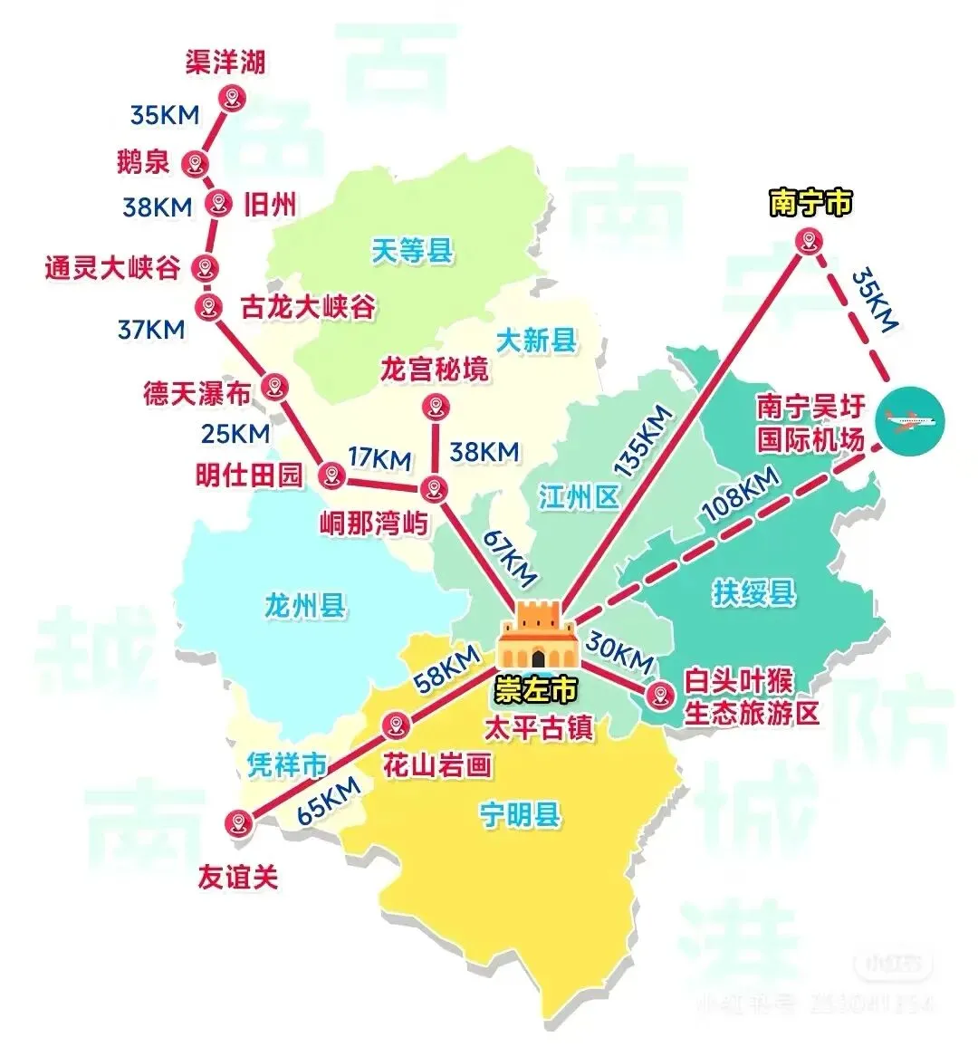 崇左:崇左市,广西壮族自治区所辖地级市,是珠江—西江经济带、北部湾城市群和广西北部湾经济区的重要节点城市,位于广西壮族自治区西南部,崇左市西部为大青山山脉,南部为公母山山脉和十万大山余脉。地势大致呈西北及西南略高,向东倾斜,中部被左江及支流切割,形成错综合颁的丘陵平原。